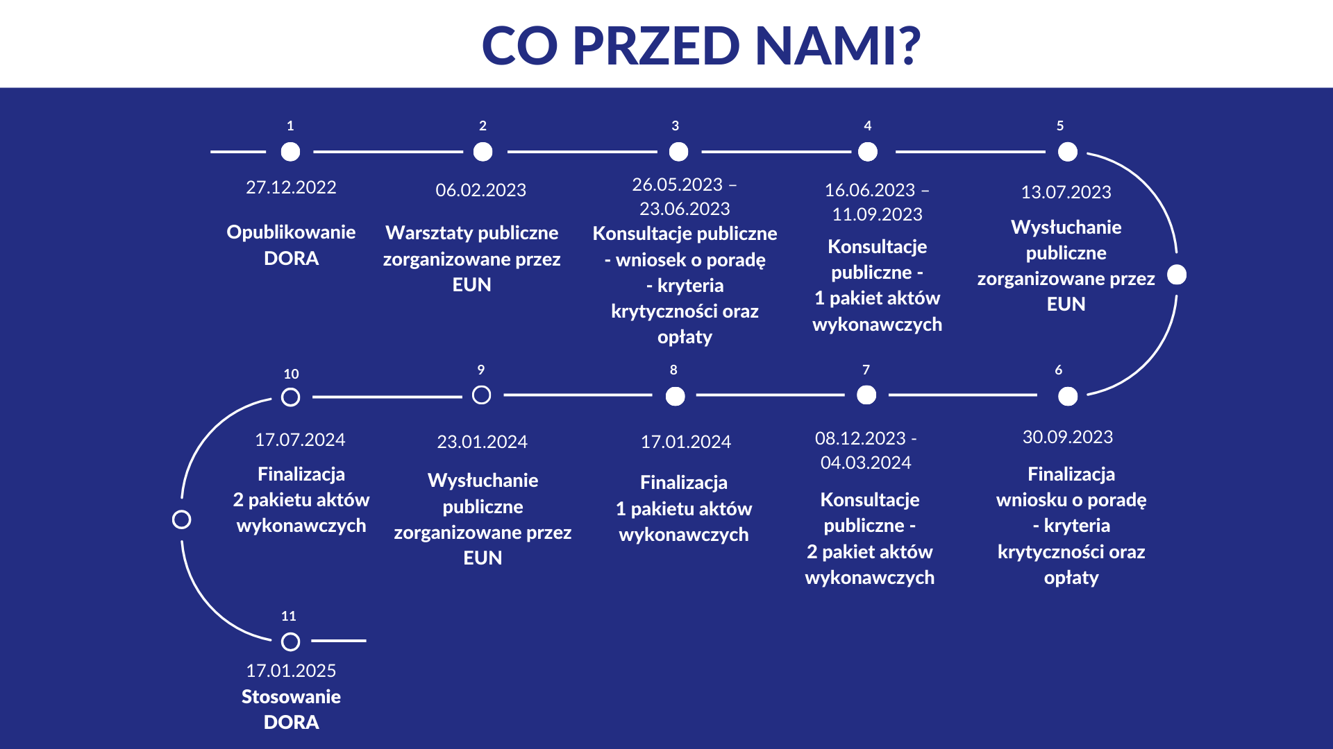 W wyniku konsultacji publicznych do projektów aktów wykonawczych wprowadzono zmiany. Dokumenty zostały przekazane przez Europejskie Urzędy Nadzoru do Komisji Europejskiej, która rozpoczęła prace w celu przyjęcia powyższych aktów wykonawczych, w ciągu najbliższych miesięcy. Co istotne, Komisja Europejska w toku prac może wprowadzić dodatkowe zmiany w dokumentach.