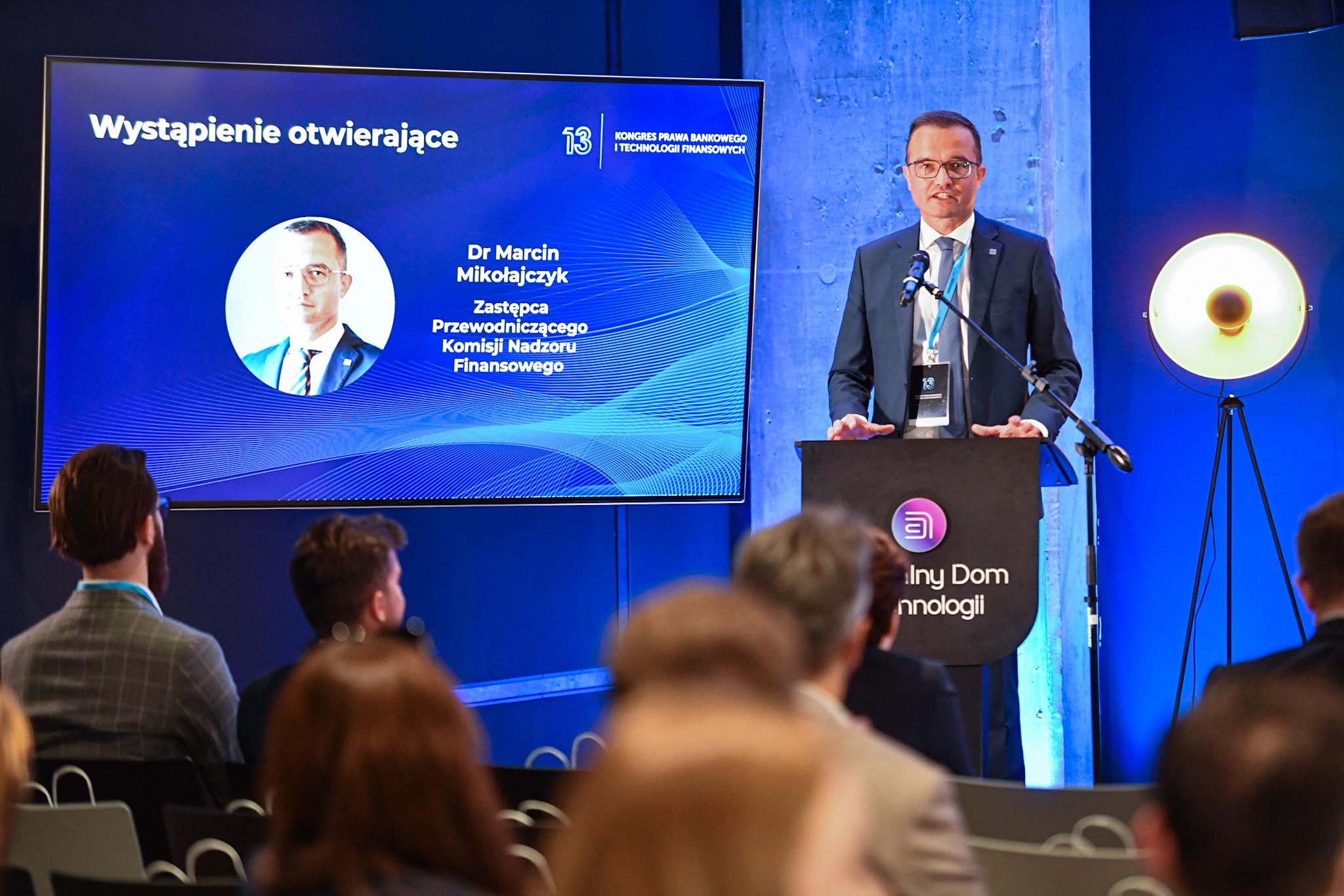Marcin Mikołajczyk – Zastępca Przewodniczącego Komisji Nadzoru Finansowego, wygłosił wystąpienie otwierające podczas 13. Kongresu Prawa Bankowego i Technologii Finansowych, organizowanego przez Koło Naukowe Prawa Bankowego działające przy Wydziale Prawa i Administracji Uniwersytetu Warszawskiego.