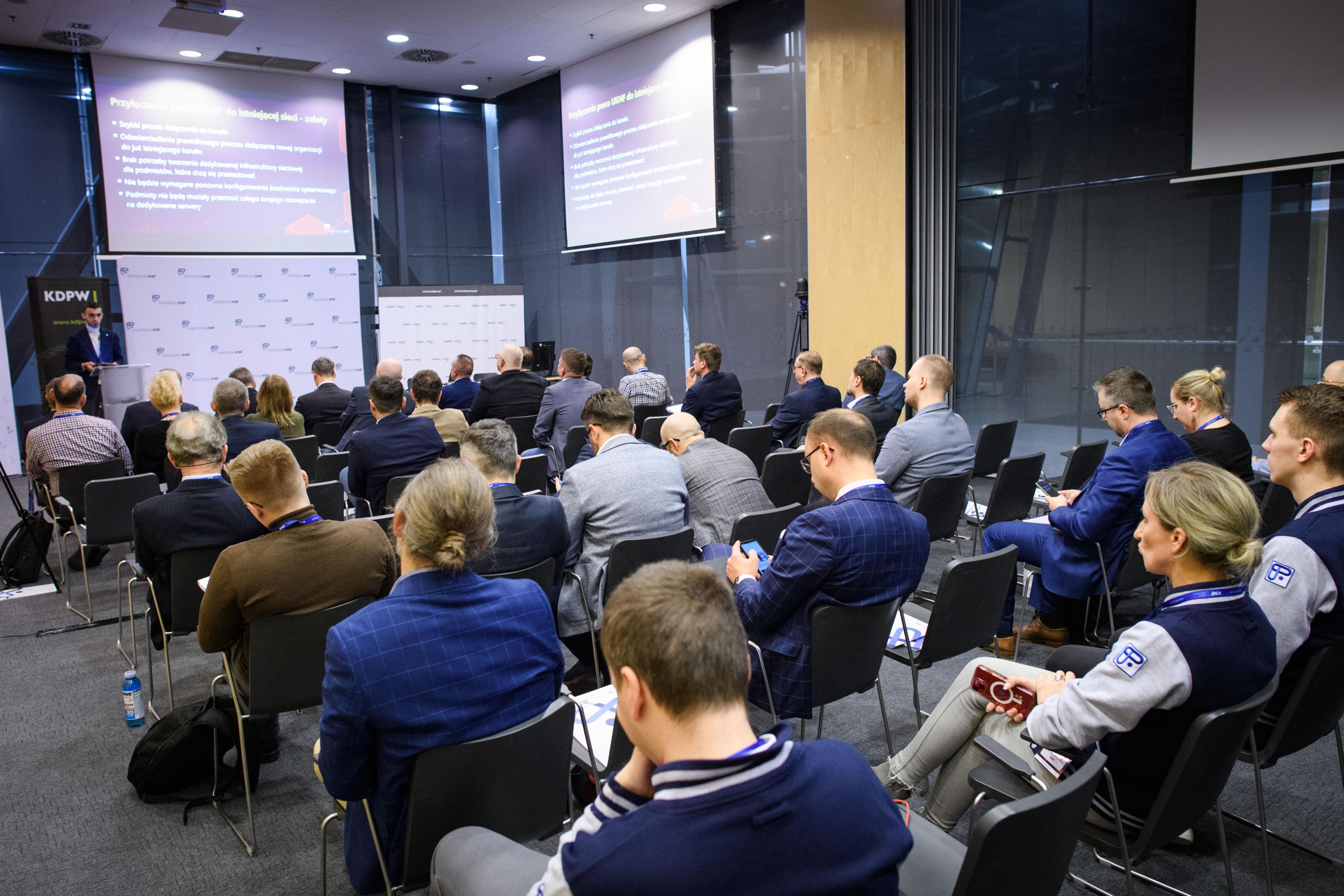 Cześć technologiczną przedstawili: Patryk Seremak, Ekspert w Departamencie Innowacji Finansowych FinTech UKNF oraz Rafał Wawrzyniak, Dyrektor Działu Eksploatacji Systemów Informatycznych w KDPW.