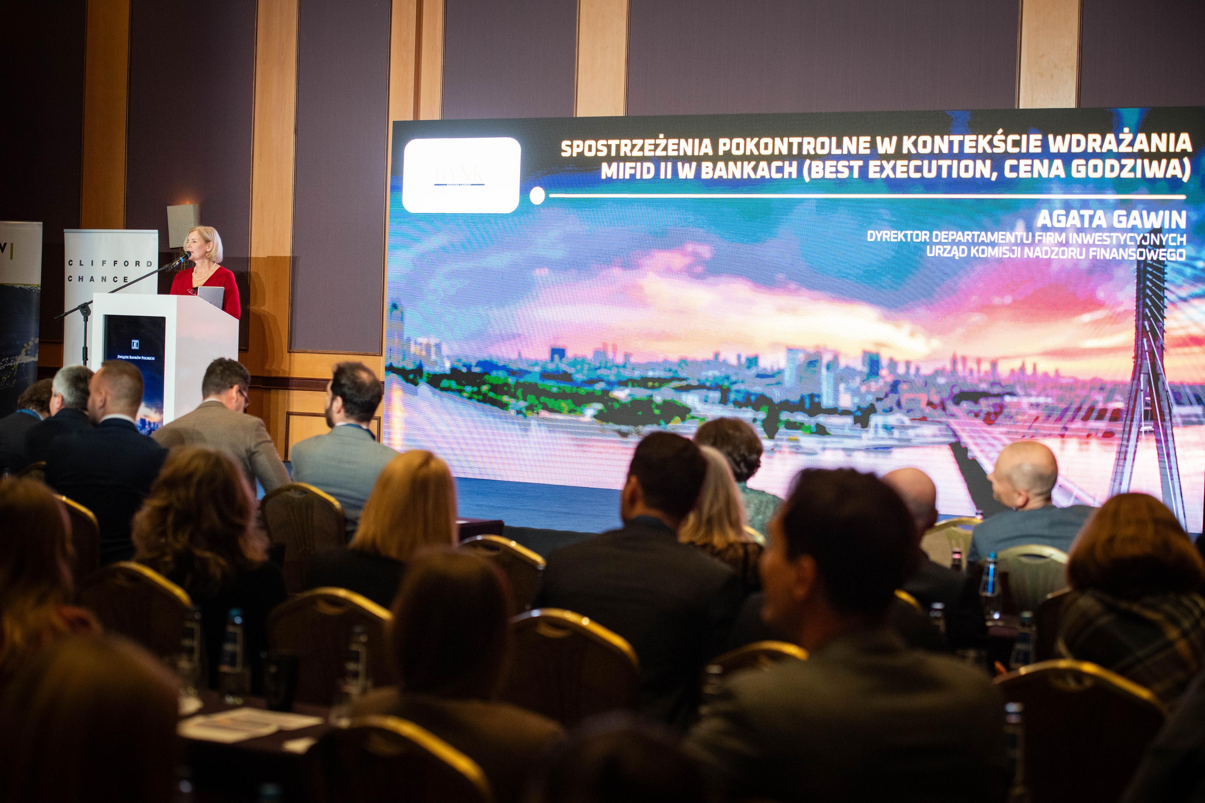 Agata Gawin wygłosiła wystąpienie pt. „Spostrzeżenia pokontrolne w kontekście wdrażania MIFID II w bankach (best execution, cena godziwa)”.