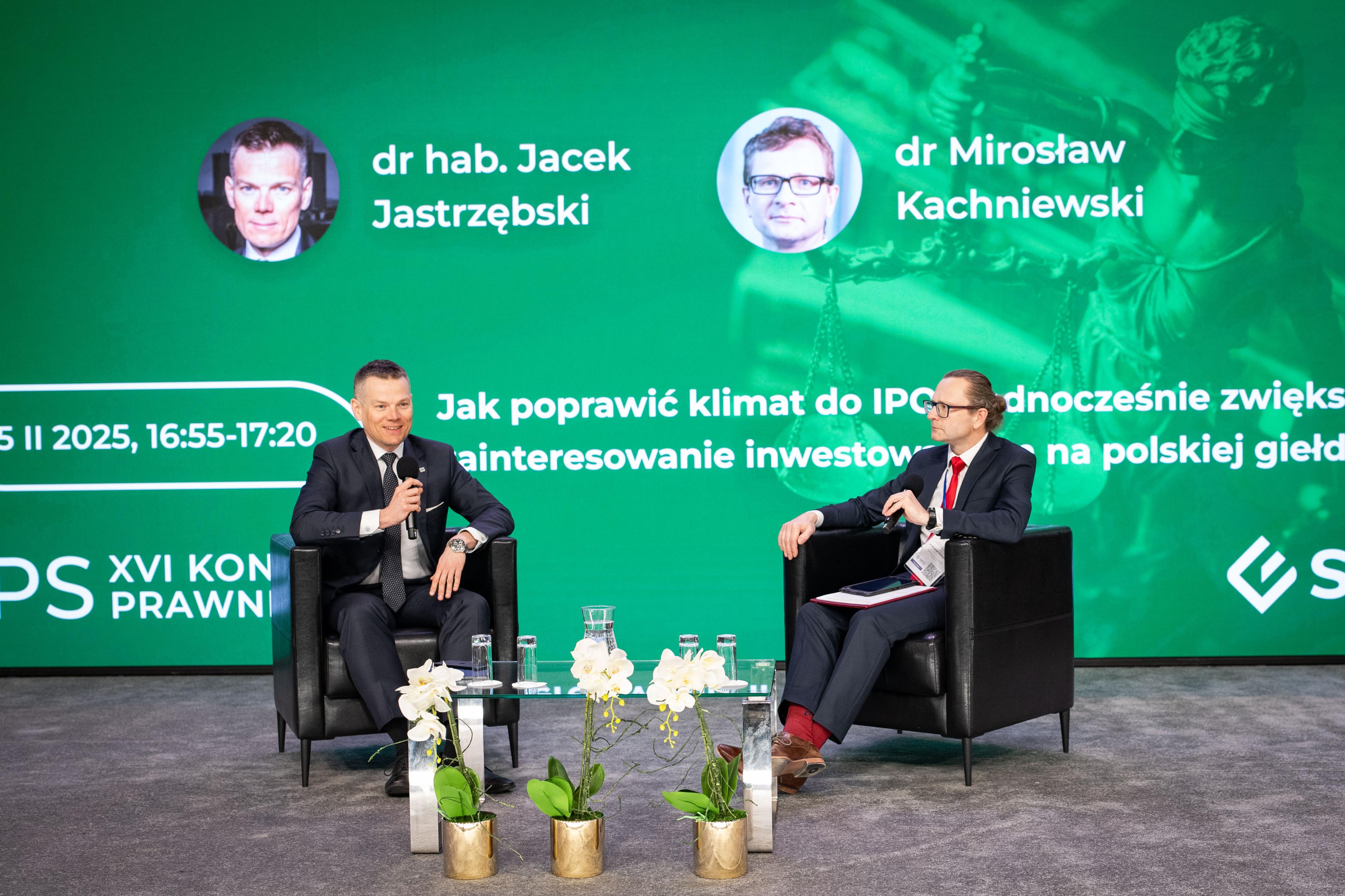 Jacek Jastrzębski, Przewodniczący Komisji Nadzoru Finansowego, uczestniczył w XVI Kongresie Prawników Spółek Giełdowych organizowanym przez Stowarzyszenie Emitentów Giełdowych (SEG). Podczas Kongresu wziął udział w rozmowie 1:1 z Mirosławem Kachniewskim, Prezesem Zarządu SEG. Motywem przewodnim rozmowy było pytanie: "Jak poprawić klimat do IPO i jednocześnie zwiększyć zainteresowanie inwestowaniem na polskiej giełdzie?".