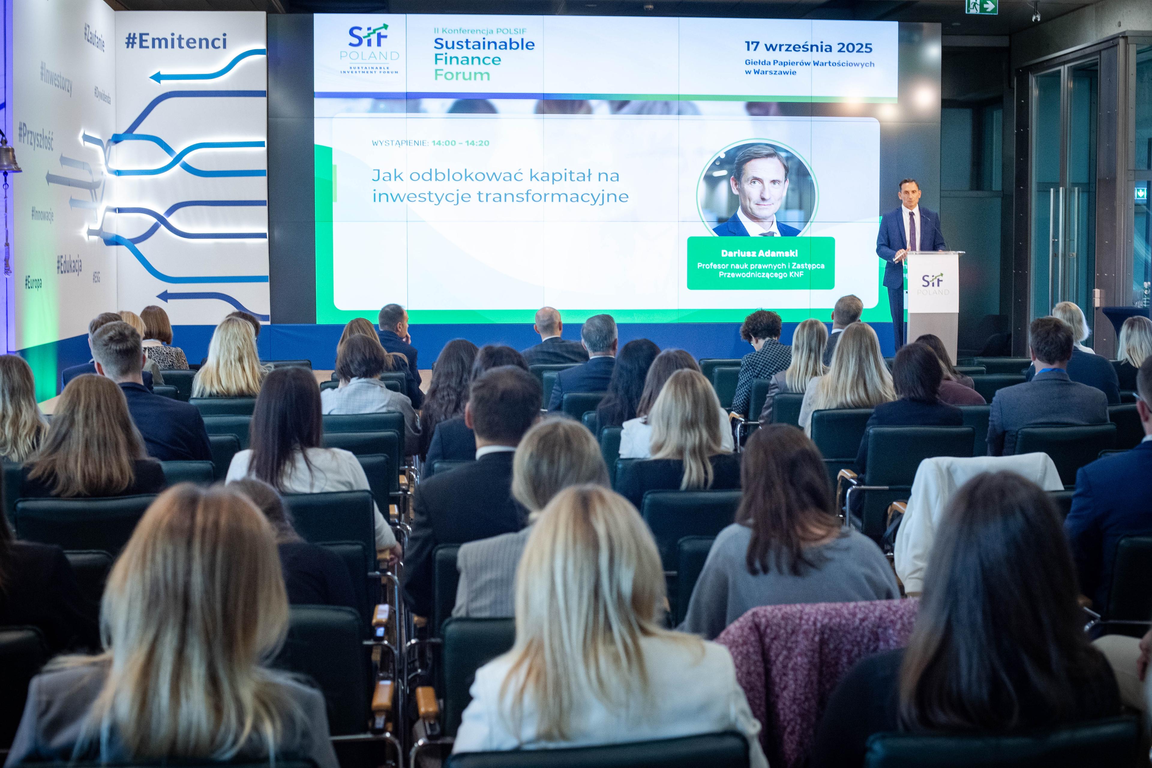 Dariusz Adamski, Zastępca Przewodniczącego Komisji Nadzoru Finansowego, wygłosił wystąpienie „Jak odblokować kapitał na inwestycje zrównoważone i innowacje”, podczas Sustainable Finance Forum, organizowanego przez Sustainable Investment Forum Poland (POLSIF).