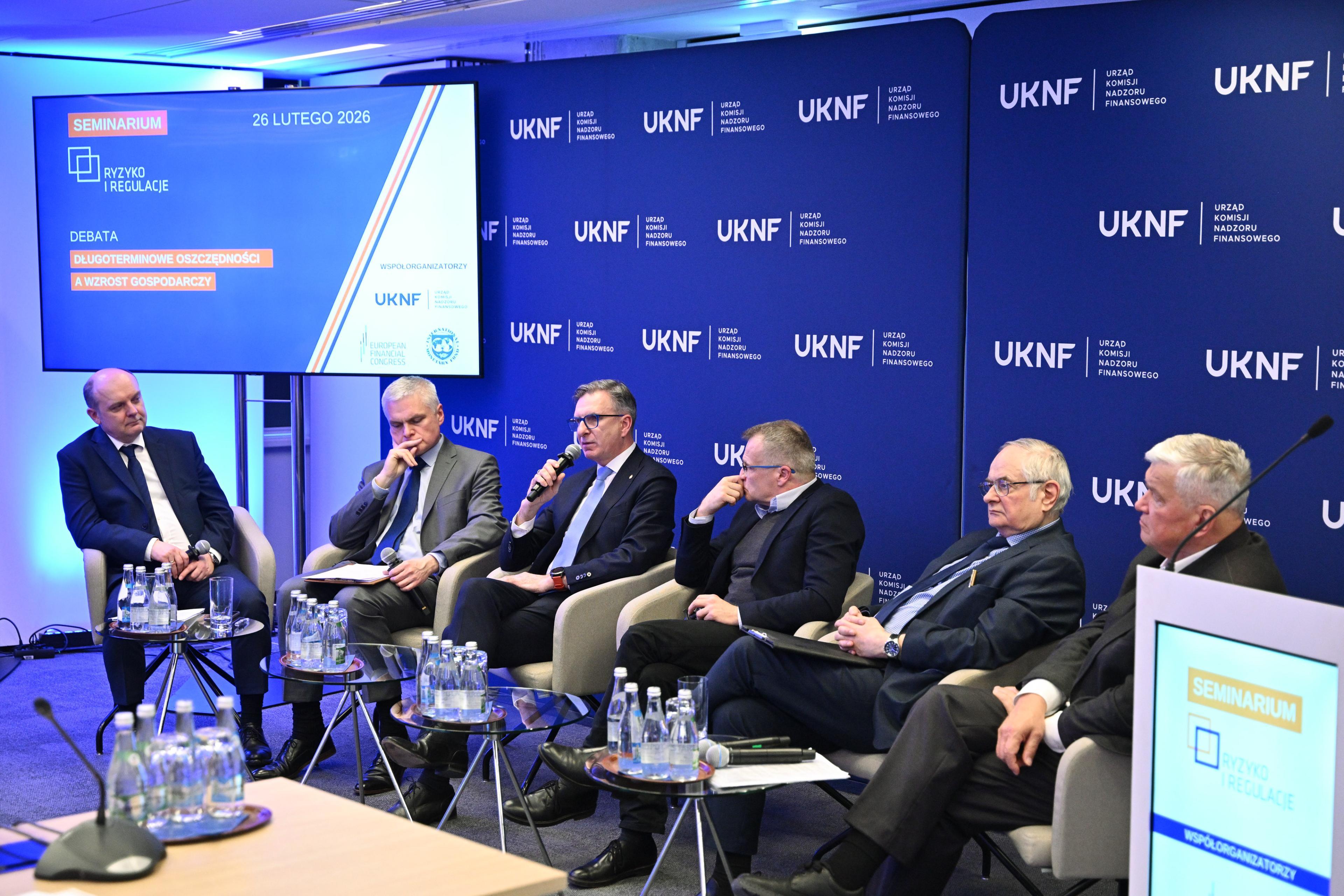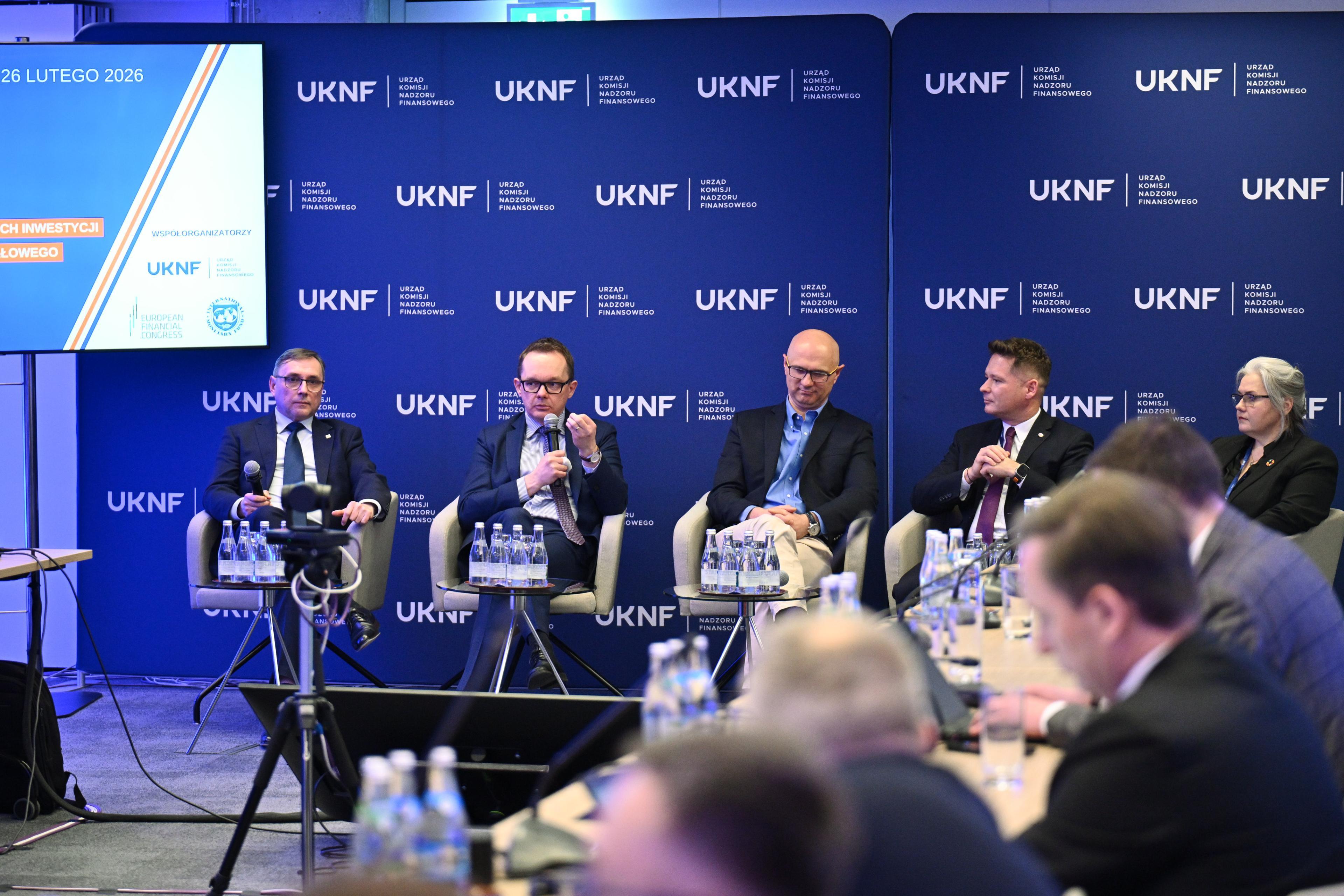 On 26 February 2026, the UKNF hosted the 5th edition of the ‘Risk and Regulations in the Financial Market’ seminar, organised in cooperation with the European Financial Congress. The seminar was co-organised by the International Monetary Fund. The main theme of the seminar was ‘Conditions of long-term investments made through the capital market’. The seminar was focused on the role of the capital market in long-term investment financing and on factors conducive to the accumulation of long-term savings. The seminar was hosted by Łukasz Wilkowicz, deputy editor-in-chief of Dziennik Gazeta Prawna.