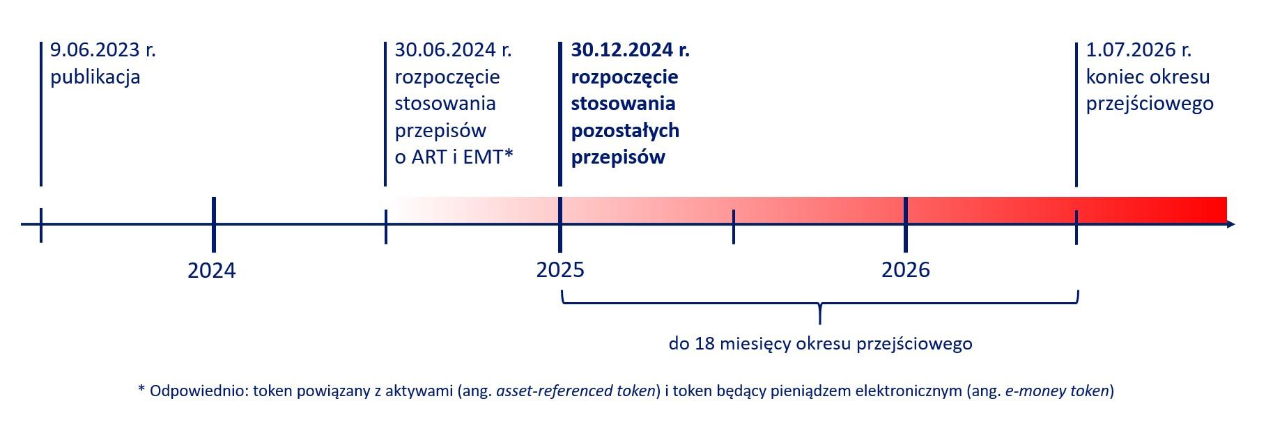 Unijne rozporządzenie w sprawie rynku kryptoaktywów1 (Rozporządzenie MiCA) zostało opublikowane 9 czerwca 2023 roku. Zacznie obowiązywać, z pewnymi wyjątkami2, 30 grudnia 2024 roku. Jednak nawet do 1 lipca 2026 roku może trwać okres przejściowy3, w którym dostawcy usług w zakresie kryptoaktywów (ang. Crypto-Asset Service Providers, CASPs) będą mogli kontynuować świadczenie usług w sposób nieregulowany4.