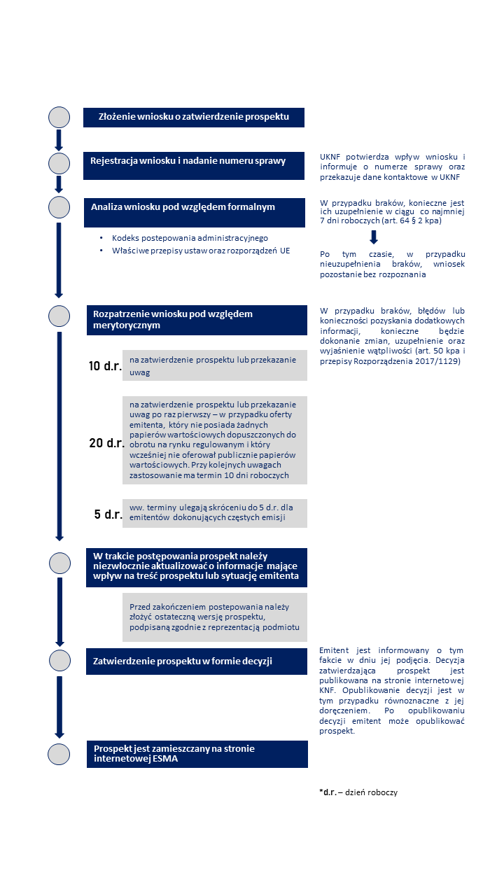 Przebieg postępowania administracyjnego w sprawie zatwierdzenia prospektu